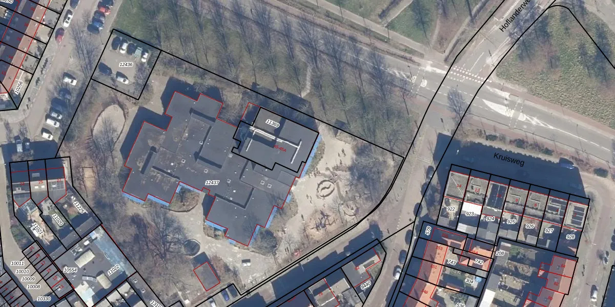 Gebruik de zoekbalk of klik op een perceel voor informatie over de adressen binnen dit perceel.