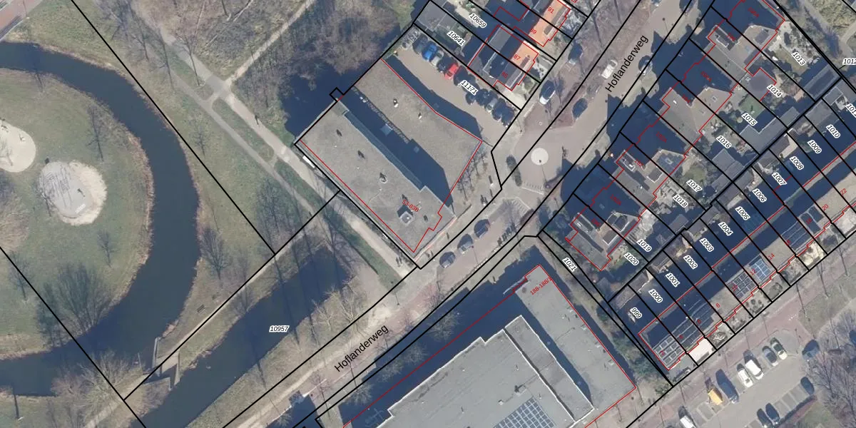 Het perceel waarop Hoflanderweg 55 staat heeft een oppervlakte van 1612 m². Dit is een zeer groot perceel. De perceeloppervlakte wordt geregistreerd door het Kadaster. Gedetailleerde informatie over de maten van dit perceel kunt u vinden in het rapport Kadastrale kaart met maatvoering van Hoflanderweg 55.