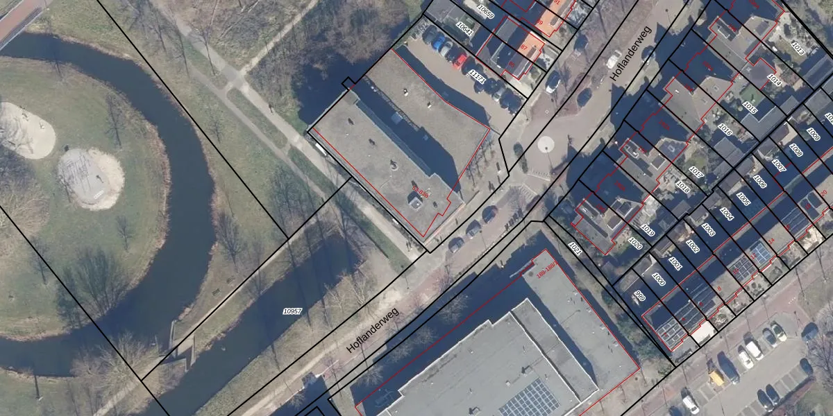 Het perceel waarop Hoflanderweg 65 staat heeft een oppervlakte van 1612 m². Dit is een zeer groot perceel. De perceeloppervlakte wordt geregistreerd door het Kadaster. Gedetailleerde informatie over de maten van dit perceel kunt u vinden in het rapport Kadastrale kaart met maatvoering van Hoflanderweg 65.
