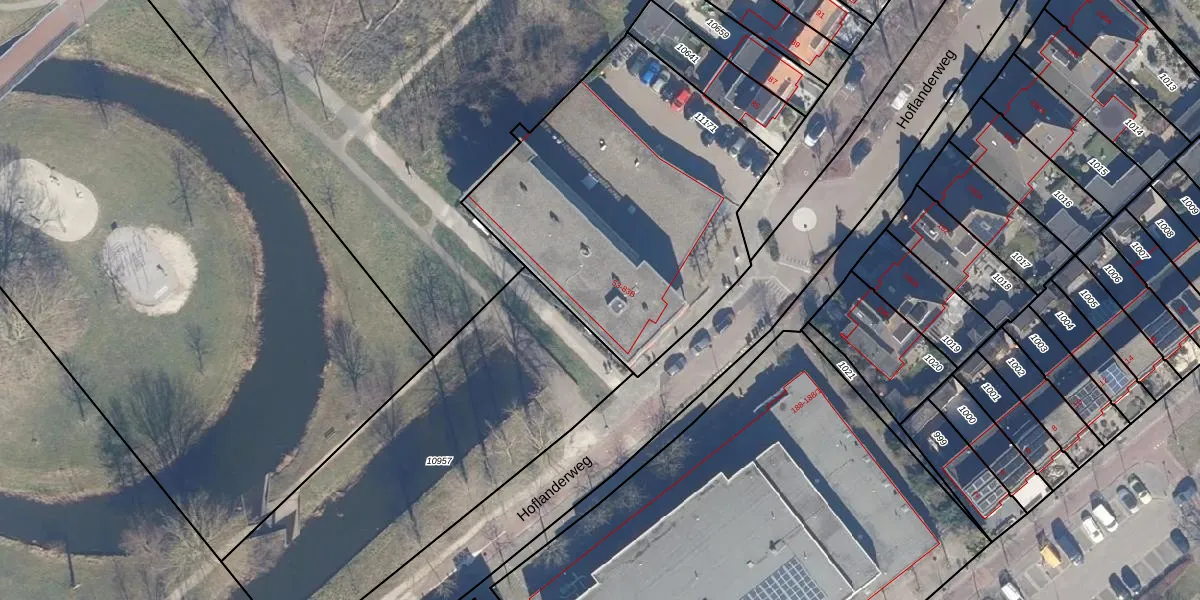 Het perceel waarop Hoflanderweg 77 staat heeft een oppervlakte van 1612 m². Dit is een zeer groot perceel. De perceeloppervlakte wordt geregistreerd door het Kadaster. Gedetailleerde informatie over de maten van dit perceel kunt u vinden in het rapport Kadastrale kaart met maatvoering van Hoflanderweg 77.
