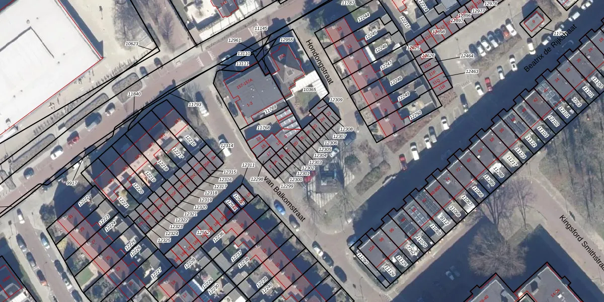Gebruik de zoekbalk of klik op een perceel voor informatie over de adressen binnen dit perceel.