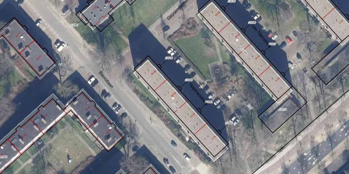 Het perceel waarop Hopmanstraat 40 staat heeft een oppervlakte van 758 m². Dit is een groot perceel. De perceeloppervlakte wordt geregistreerd door het Kadaster. Gedetailleerde informatie over de maten van dit perceel kunt u vinden in het rapport Kadastrale kaart met maatvoering van Hopmanstraat 40.