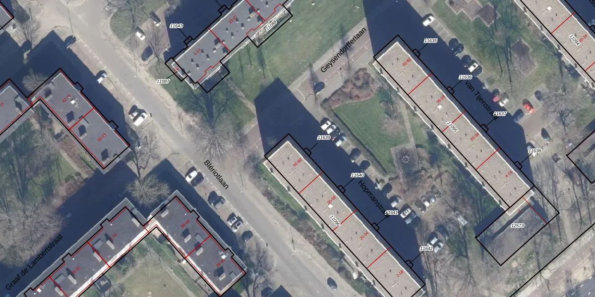 Het perceel waarop Hopmanstraat 64 staat heeft een oppervlakte van 758 m². Dit is een groot perceel. De perceeloppervlakte wordt geregistreerd door het Kadaster. Gedetailleerde informatie over de maten van dit perceel kunt u vinden in het rapport Kadastrale kaart met maatvoering van Hopmanstraat 64.