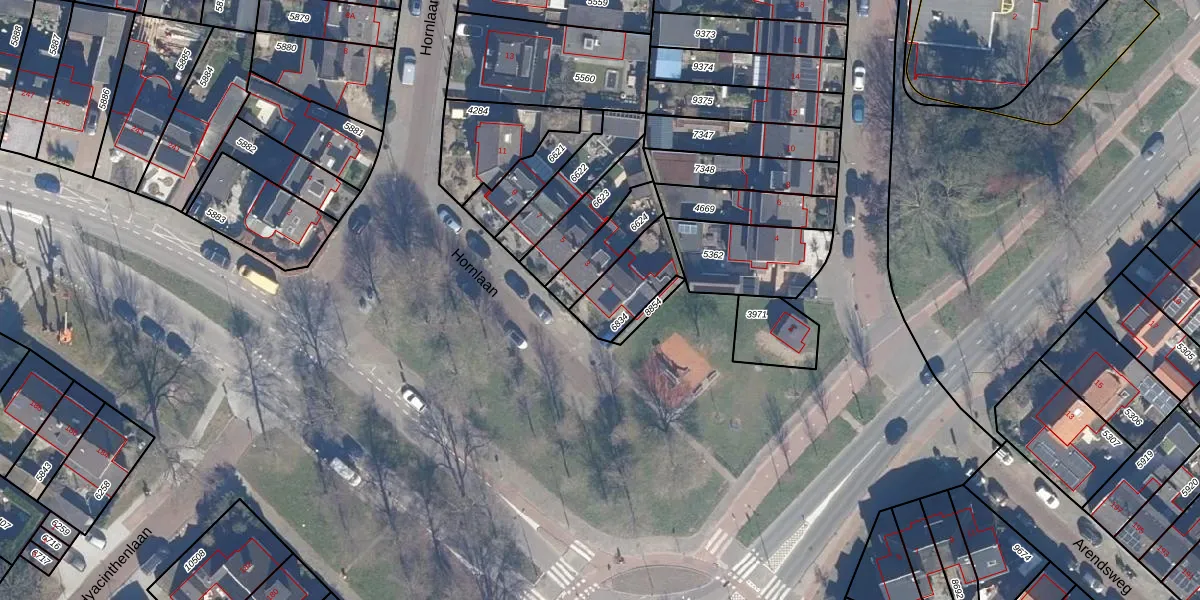 Het perceel waarop Hornlaan 1 staat heeft een oppervlakte van 182 m². Dit is een middelgroot perceel. De perceeloppervlakte wordt geregistreerd door het Kadaster. Gedetailleerde informatie over de maten van dit perceel kunt u vinden in het rapport Kadastrale kaart met maatvoering van Hornlaan 1.