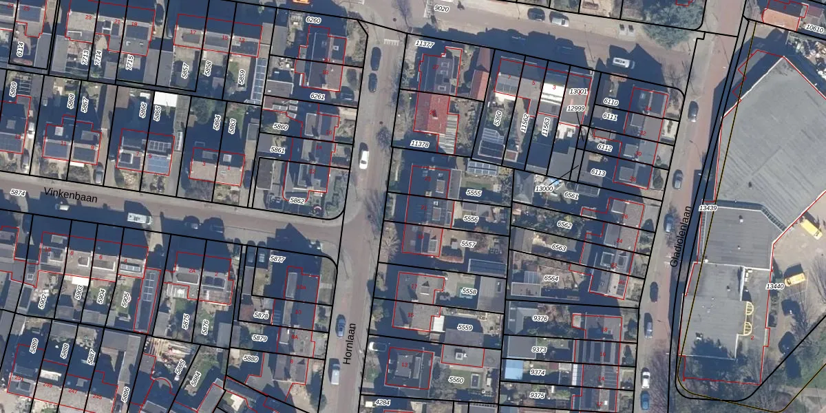 Gebruik de zoekbalk of klik op een perceel voor informatie over de adressen binnen dit perceel.