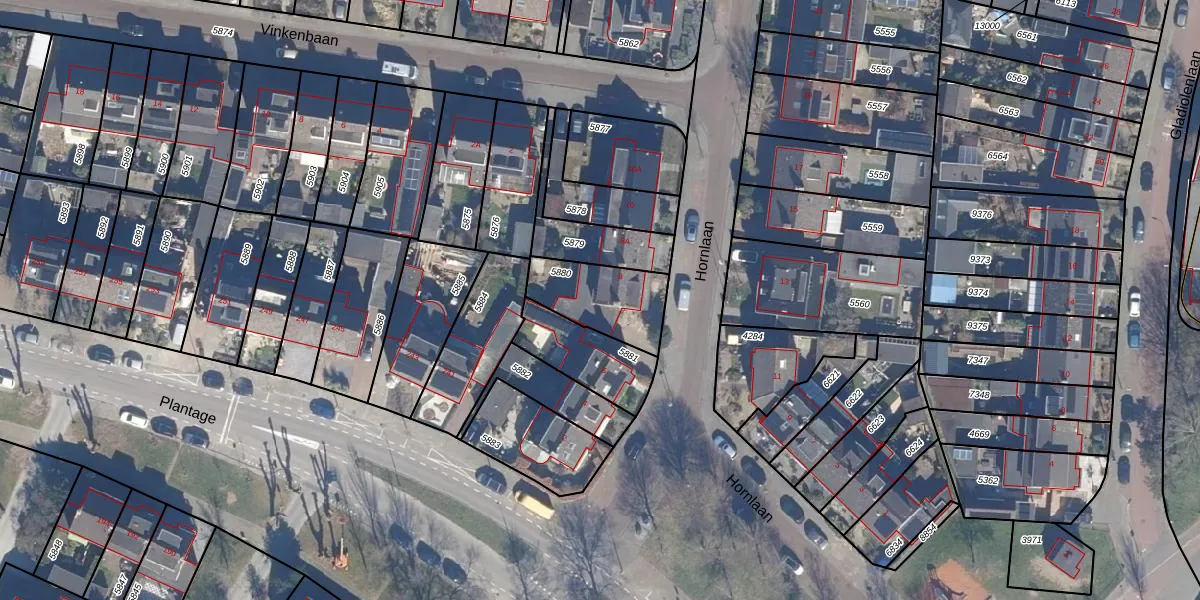 Gebruik de zoekbalk of klik op een perceel voor informatie over de adressen binnen dit perceel.