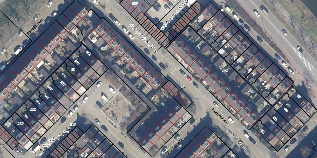Het perceel waarop Hunzestraat 16 staat heeft een oppervlakte van 2319 m². Dit is een zeer groot perceel. De perceeloppervlakte wordt geregistreerd door het Kadaster. Gedetailleerde informatie over de maten van dit perceel kunt u vinden in het rapport Kadastrale kaart met maatvoering van Hunzestraat 16.