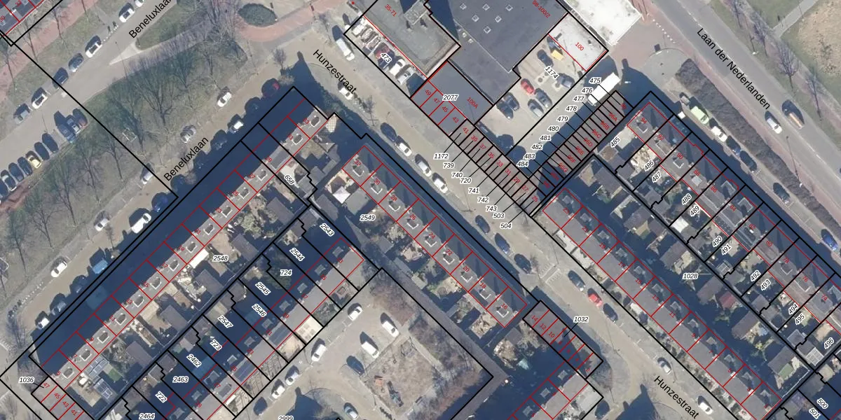 Het perceel waarop Hunzestraat 26 staat heeft een oppervlakte van 2319 m². Dit is een zeer groot perceel. De perceeloppervlakte wordt geregistreerd door het Kadaster. Gedetailleerde informatie over de maten van dit perceel kunt u vinden in het rapport Kadastrale kaart met maatvoering van Hunzestraat 26.