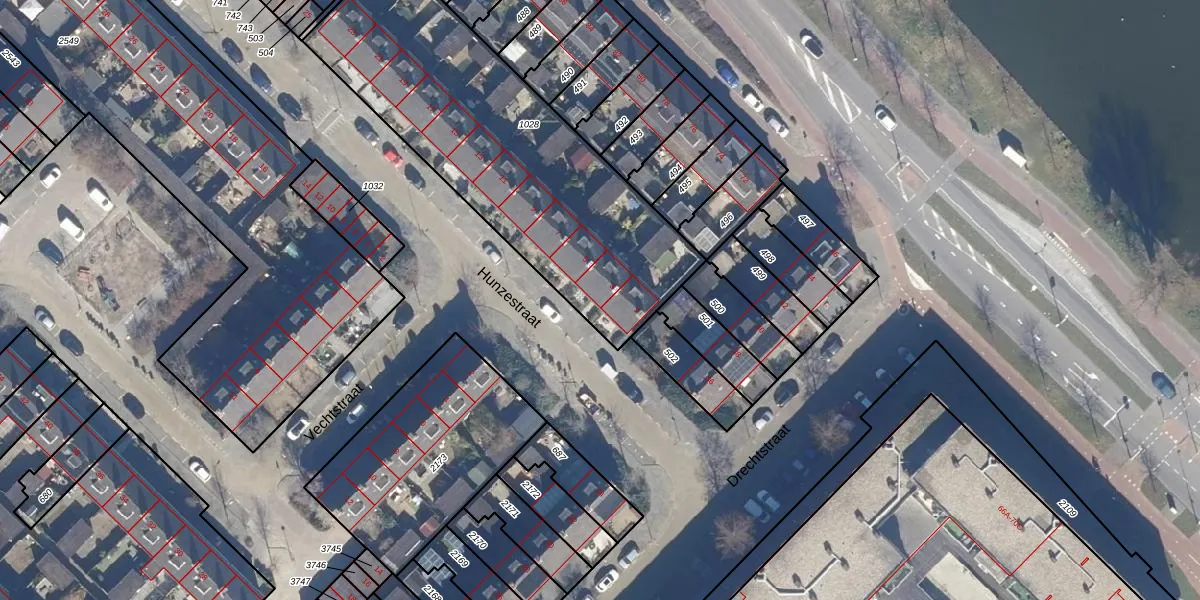 Het perceel waarop Hunzestraat 3 staat heeft een oppervlakte van 1557 m². Dit is een zeer groot perceel. De perceeloppervlakte wordt geregistreerd door het Kadaster. Gedetailleerde informatie over de maten van dit perceel kunt u vinden in het rapport Kadastrale kaart met maatvoering van Hunzestraat 3.