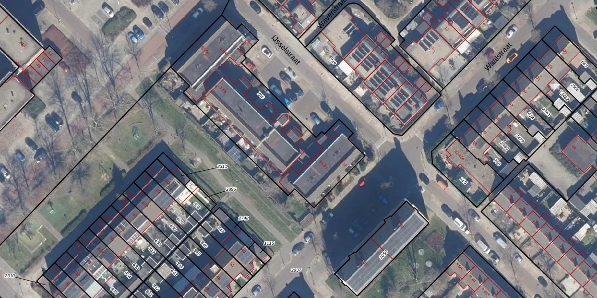 Het perceel waarop IJsselstraat 11 staat heeft een oppervlakte van 1596 m². Dit is een zeer groot perceel. De perceeloppervlakte wordt geregistreerd door het Kadaster. Gedetailleerde informatie over de maten van dit perceel kunt u vinden in het rapport Kadastrale kaart met maatvoering van IJsselstraat 11.