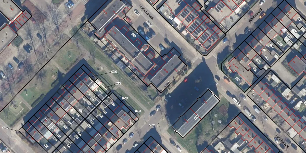 Het perceel waarop IJsselstraat 33 staat heeft een oppervlakte van 1596 m². Dit is een zeer groot perceel. De perceeloppervlakte wordt geregistreerd door het Kadaster. Gedetailleerde informatie over de maten van dit perceel kunt u vinden in het rapport Kadastrale kaart met maatvoering van IJsselstraat 33.