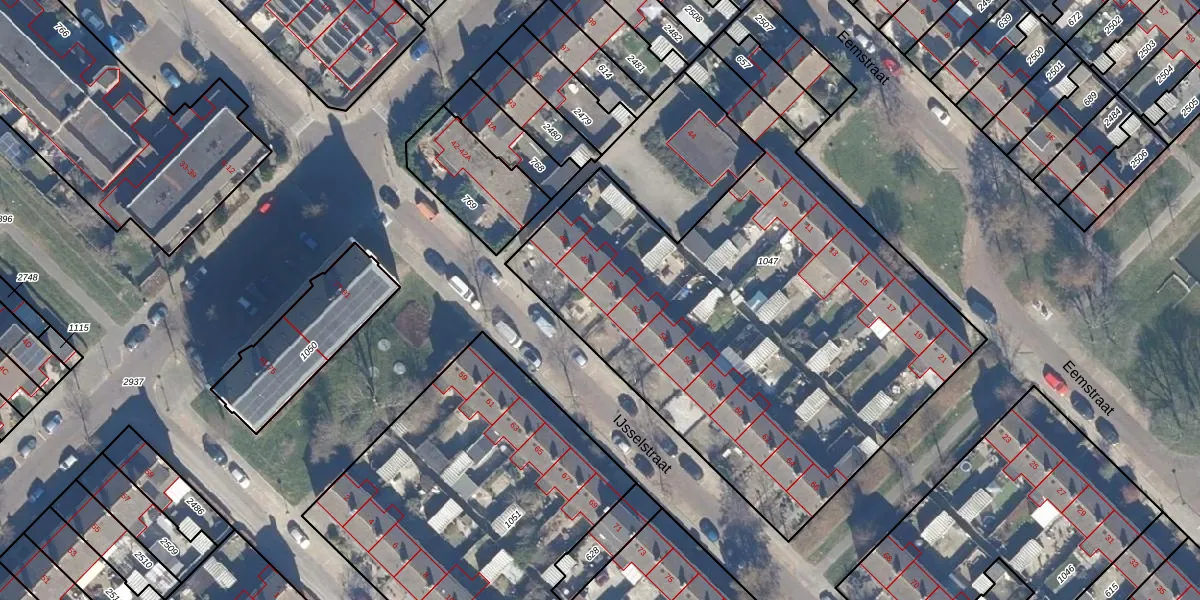 Het perceel waarop IJsselstraat 50 staat heeft een oppervlakte van 2799 m². Dit is een zeer groot perceel. De perceeloppervlakte wordt geregistreerd door het Kadaster. Gedetailleerde informatie over de maten van dit perceel kunt u vinden in het rapport Kadastrale kaart met maatvoering van IJsselstraat 50.