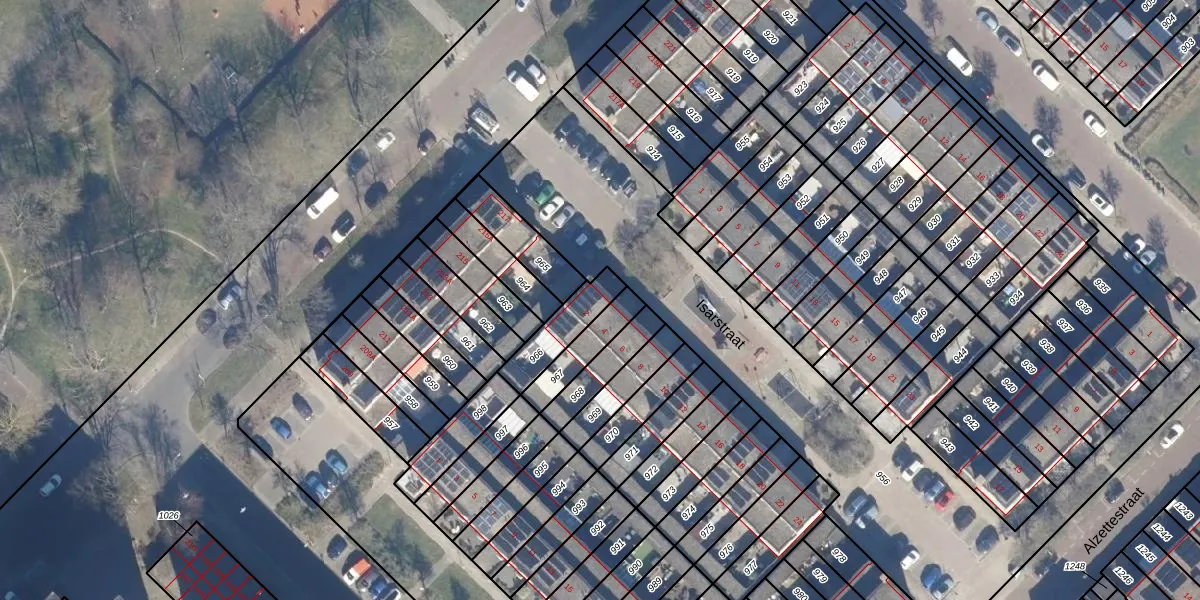 Gebruik de zoekbalk of klik op een perceel voor informatie over de adressen binnen dit perceel.