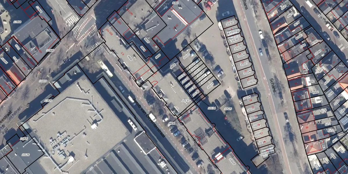 Het perceel waarop Jacob van Deventerstraat 45 staat heeft een oppervlakte van 450 m². Dit is een groot perceel. De perceeloppervlakte wordt geregistreerd door het Kadaster. Gedetailleerde informatie over de maten van dit perceel kunt u vinden in het rapport Kadastrale kaart met maatvoering van Jacob van Deventerstraat 45.