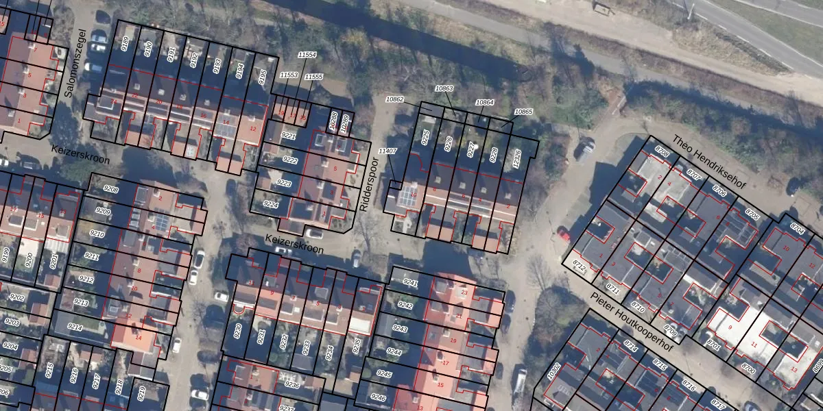 Het perceel waarop Keizerskroon 10 staat heeft een oppervlakte van 191 m². Dit is een middelgroot perceel. De perceeloppervlakte wordt geregistreerd door het Kadaster. Gedetailleerde informatie over de maten van dit perceel kunt u vinden in het rapport Kadastrale kaart met maatvoering van Keizerskroon 10.