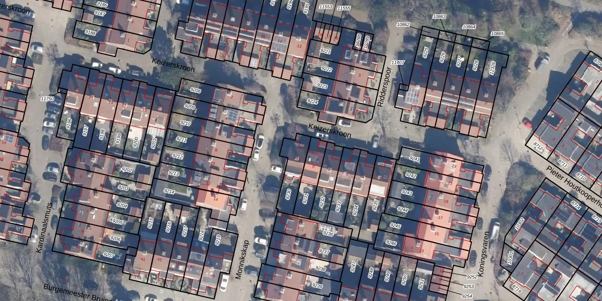 Het perceel waarop Keizerskroon 11 staat heeft een oppervlakte van 174 m². Dit is een middelgroot perceel. De perceeloppervlakte wordt geregistreerd door het Kadaster. Gedetailleerde informatie over de maten van dit perceel kunt u vinden in het rapport Kadastrale kaart met maatvoering van Keizerskroon 11.