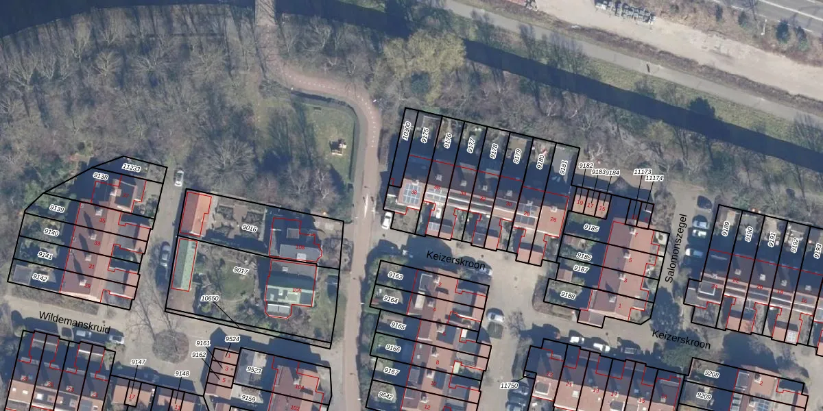 Het perceel waarop Keizerskroon 38 staat heeft een oppervlakte van 187 m². Dit is een middelgroot perceel. De perceeloppervlakte wordt geregistreerd door het Kadaster. Gedetailleerde informatie over de maten van dit perceel kunt u vinden in het rapport Kadastrale kaart met maatvoering van Keizerskroon 38.