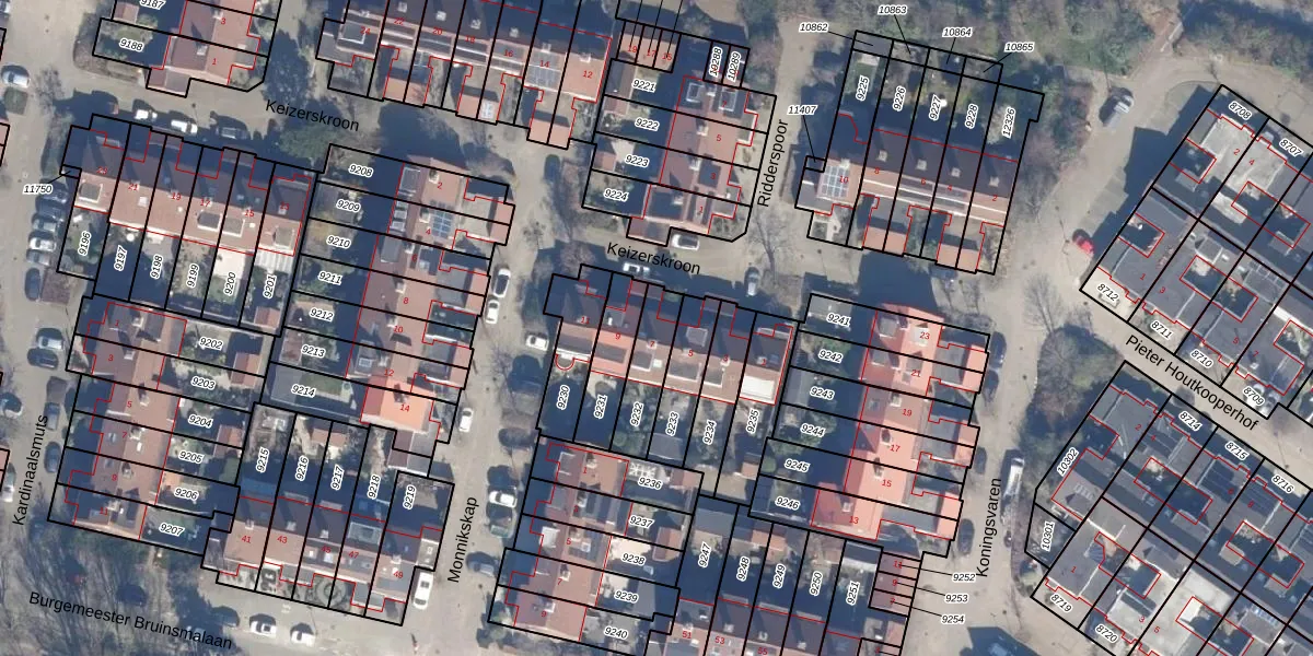 Het perceel waarop Keizerskroon 7 staat heeft een oppervlakte van 149 m². Dit is een middelgroot perceel. De perceeloppervlakte wordt geregistreerd door het Kadaster. Gedetailleerde informatie over de maten van dit perceel kunt u vinden in het rapport Kadastrale kaart met maatvoering van Keizerskroon 7.