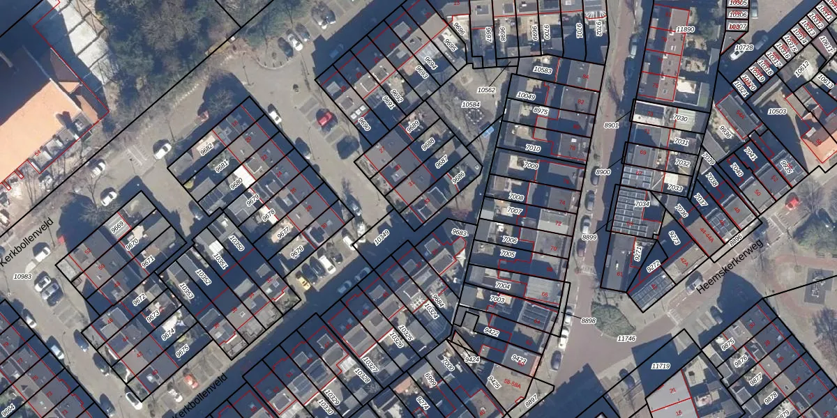 Gebruik de zoekbalk of klik op een perceel voor informatie over de adressen binnen dit perceel.