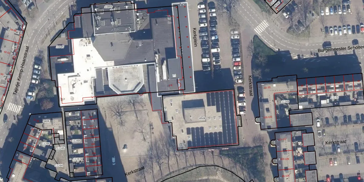 Het perceel waarop Kerkplein 5 staat heeft een oppervlakte van 3,3 ha. Dit is een zeer groot perceel. De perceeloppervlakte wordt geregistreerd door het Kadaster. Gedetailleerde informatie over de maten van dit perceel kunt u vinden in het rapport Kadastrale kaart met maatvoering van Kerkplein 5.