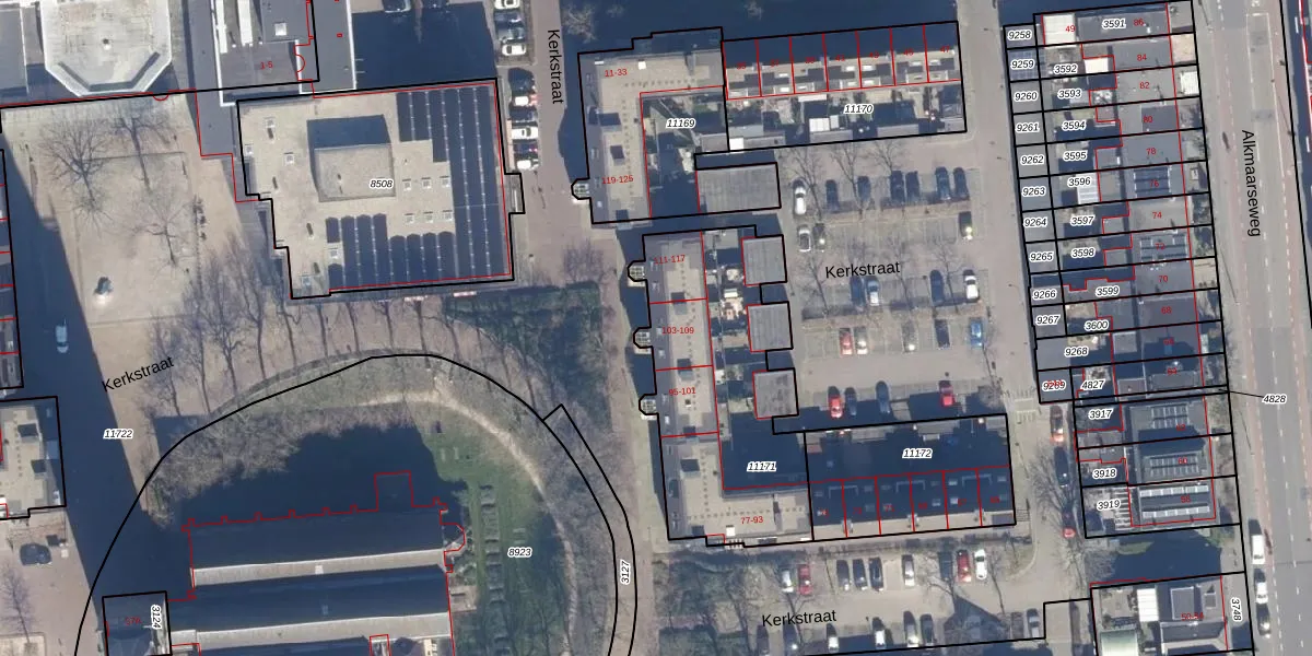 Kerkstraat 103 is gelegen op kadastraal perceel BVW00A11171. Deze kadastrale aanduiding is uniek en wordt gebruikt door het Kadaster om eigendomsrechten en andere zakelijke rechten vast te leggen. Het perceel maakt onderdeel uit van de kadastrale gemeente Beverwijk.
