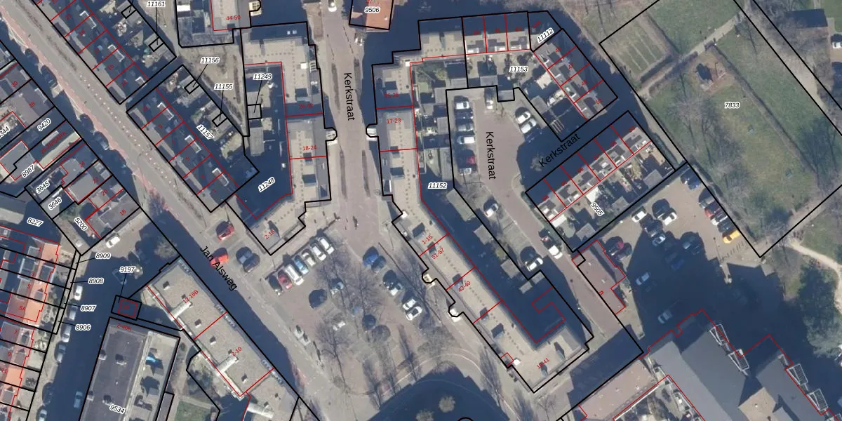 Kerkstraat 13 is gelegen op kadastraal perceel BVW00A11152. Deze kadastrale aanduiding is uniek en wordt gebruikt door het Kadaster om eigendomsrechten en andere zakelijke rechten vast te leggen. Het perceel maakt onderdeel uit van de kadastrale gemeente Beverwijk.