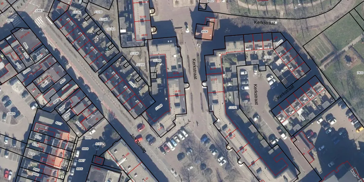 Het perceel waarop Kerkstraat 18 staat heeft een oppervlakte van 907 m². Dit is een groot perceel. De perceeloppervlakte wordt geregistreerd door het Kadaster. Gedetailleerde informatie over de maten van dit perceel kunt u vinden in het rapport Kadastrale kaart met maatvoering van Kerkstraat 18.