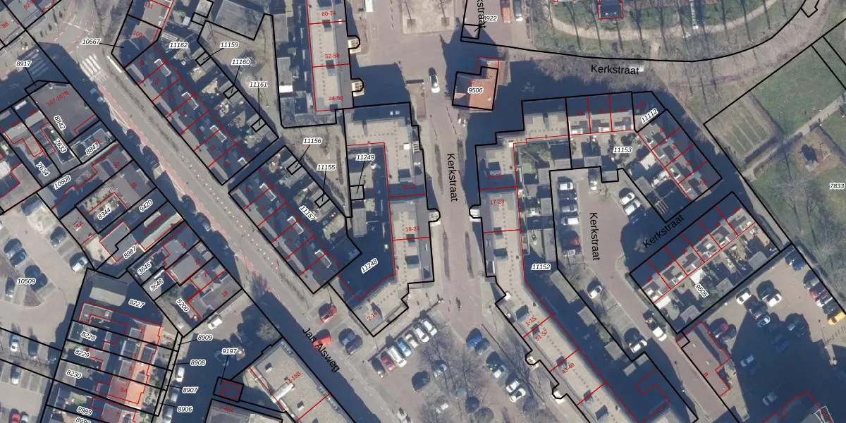 Het perceel waarop Kerkstraat 20 staat heeft een oppervlakte van 907 m². Dit is een groot perceel. De perceeloppervlakte wordt geregistreerd door het Kadaster. Gedetailleerde informatie over de maten van dit perceel kunt u vinden in het rapport Kadastrale kaart met maatvoering van Kerkstraat 20.
