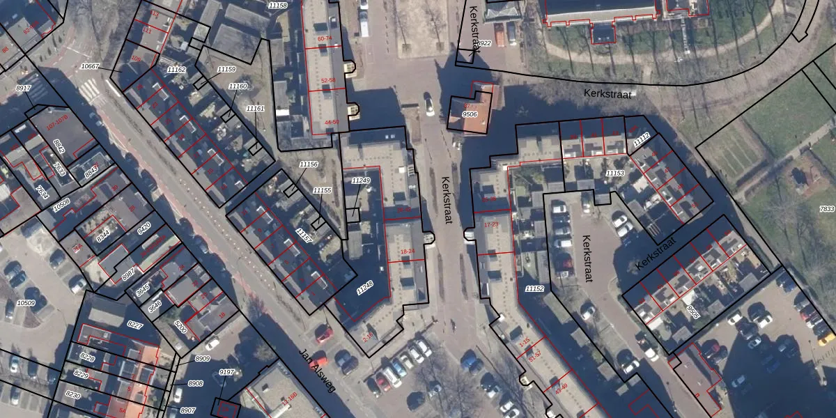 Het perceel waarop Kerkstraat 26 staat heeft een oppervlakte van 907 m². Dit is een groot perceel. De perceeloppervlakte wordt geregistreerd door het Kadaster. Gedetailleerde informatie over de maten van dit perceel kunt u vinden in het rapport Kadastrale kaart met maatvoering van Kerkstraat 26.