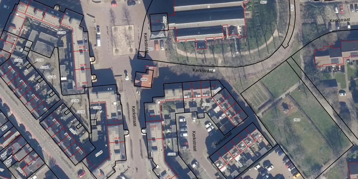 Kerkstraat 33 is gelegen op kadastraal perceel BVW00A11152. Deze kadastrale aanduiding is uniek en wordt gebruikt door het Kadaster om eigendomsrechten en andere zakelijke rechten vast te leggen. Het perceel maakt onderdeel uit van de kadastrale gemeente Beverwijk.