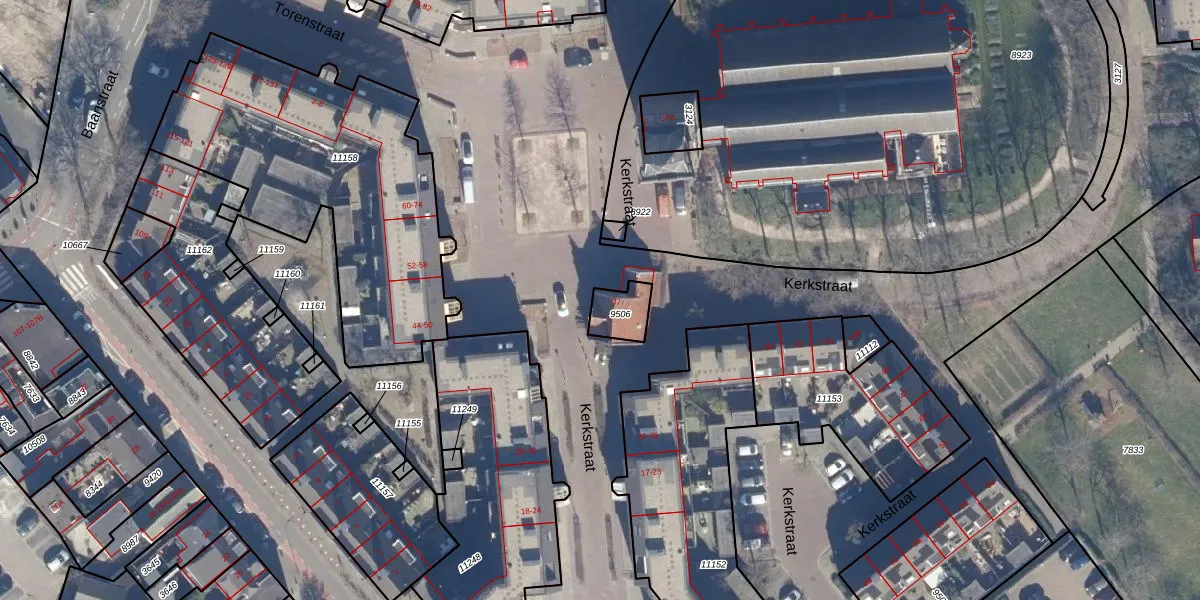 Het perceel waarop Kerkstraat 37 staat heeft een oppervlakte van 83 m². Dit is een klein perceel. De perceeloppervlakte wordt geregistreerd door het Kadaster. Gedetailleerde informatie over de maten van dit perceel kunt u vinden in het rapport Kadastrale kaart met maatvoering van Kerkstraat 37.