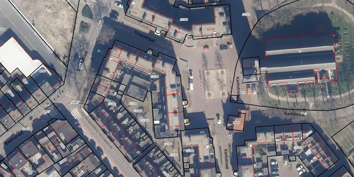 Het perceel waarop Kerkstraat 62 staat heeft een oppervlakte van 1428 m². Dit is een zeer groot perceel. De perceeloppervlakte wordt geregistreerd door het Kadaster. Gedetailleerde informatie over de maten van dit perceel kunt u vinden in het rapport Kadastrale kaart met maatvoering van Kerkstraat 62.
