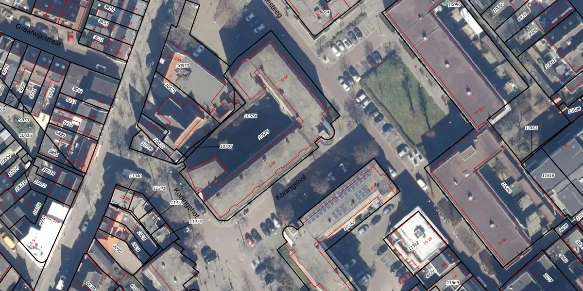 Het perceel waarop Koningshof 17 staat heeft een oppervlakte van 1761 m². Dit is een zeer groot perceel. De perceeloppervlakte wordt geregistreerd door het Kadaster. Gedetailleerde informatie over de maten van dit perceel kunt u vinden in het rapport Kadastrale kaart met maatvoering van Koningshof 17.