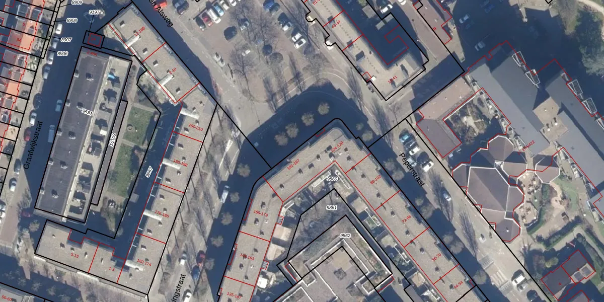 Het perceel waarop Koningstraat 183 staat heeft een oppervlakte van 2432 m². Dit is een zeer groot perceel. De perceeloppervlakte wordt geregistreerd door het Kadaster. Gedetailleerde informatie over de maten van dit perceel kunt u vinden in het rapport Kadastrale kaart met maatvoering van Koningstraat 183.