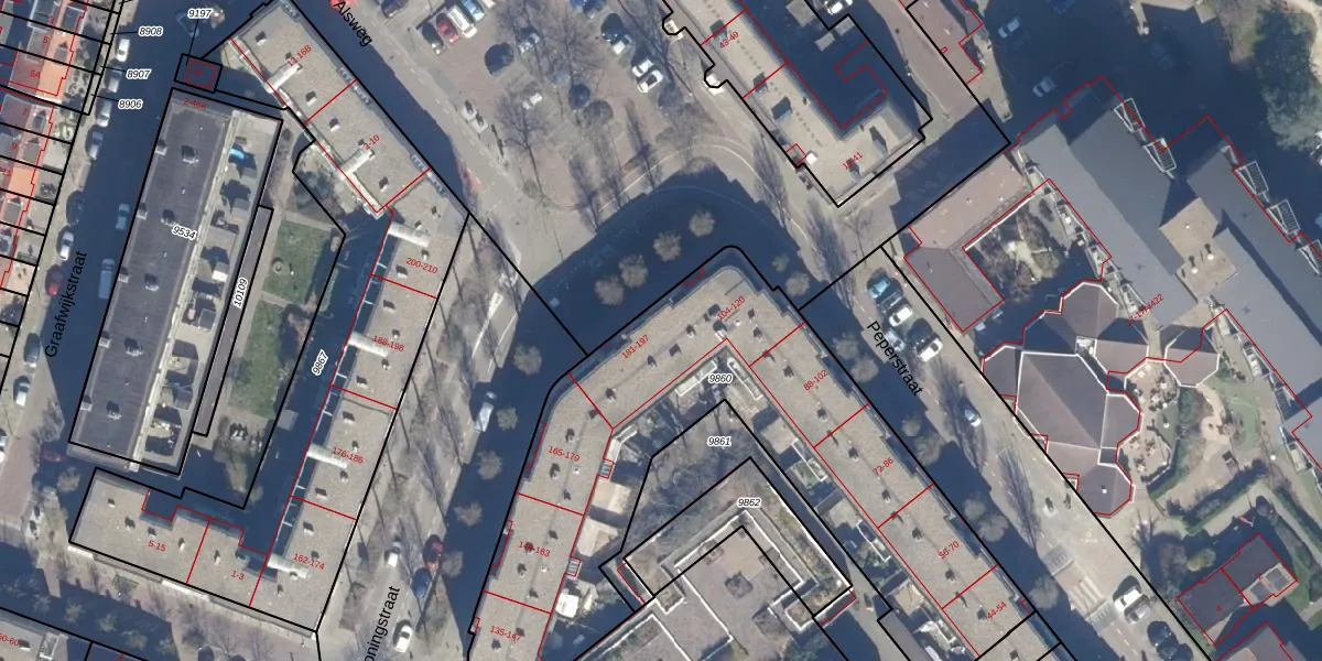 Het perceel waarop Koningstraat 189 staat heeft een oppervlakte van 2432 m². Dit is een zeer groot perceel. De perceeloppervlakte wordt geregistreerd door het Kadaster. Gedetailleerde informatie over de maten van dit perceel kunt u vinden in het rapport Kadastrale kaart met maatvoering van Koningstraat 189.