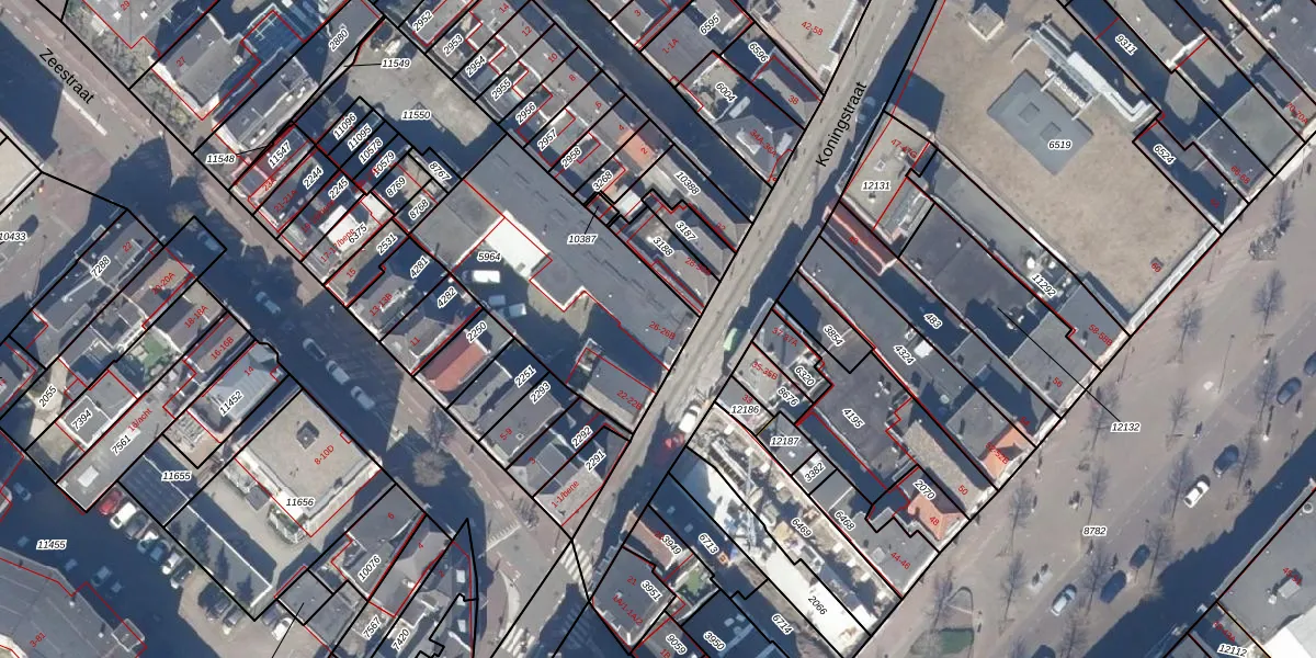 Het perceel waarop Koningstraat 26-B staat heeft een oppervlakte van 935 m². Dit is een groot perceel. De perceeloppervlakte wordt geregistreerd door het Kadaster. Gedetailleerde informatie over de maten van dit perceel kunt u vinden in het rapport Kadastrale kaart met maatvoering van Koningstraat 26-B.