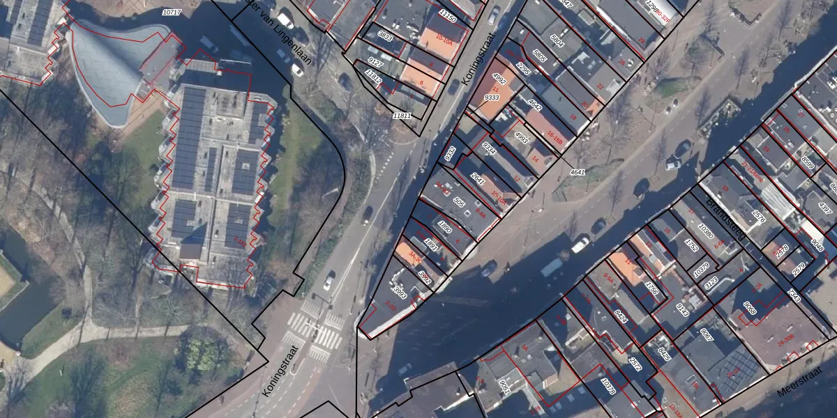 Het perceel waarop Koningstraat 7 staat heeft een oppervlakte van 95 m². Dit is een klein perceel. De perceeloppervlakte wordt geregistreerd door het Kadaster. Gedetailleerde informatie over de maten van dit perceel kunt u vinden in het rapport Kadastrale kaart met maatvoering van Koningstraat 7.