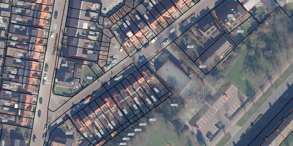 Kuikensweg 14-A is gelegen op kadastraal perceel WIJ02B9574. Deze kadastrale aanduiding is uniek en wordt gebruikt door het Kadaster om eigendomsrechten en andere zakelijke rechten vast te leggen. Het perceel maakt onderdeel uit van de kadastrale gemeente Wijk aan Zee en Duin.