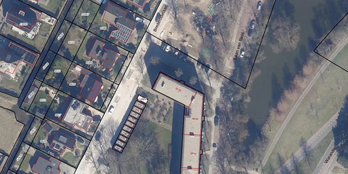Het perceel waarop Laan van Blois 92 staat heeft een oppervlakte van 1343 m². Dit is een zeer groot perceel. De perceeloppervlakte wordt geregistreerd door het Kadaster. Gedetailleerde informatie over de maten van dit perceel kunt u vinden in het rapport Kadastrale kaart met maatvoering van Laan van Blois 92.