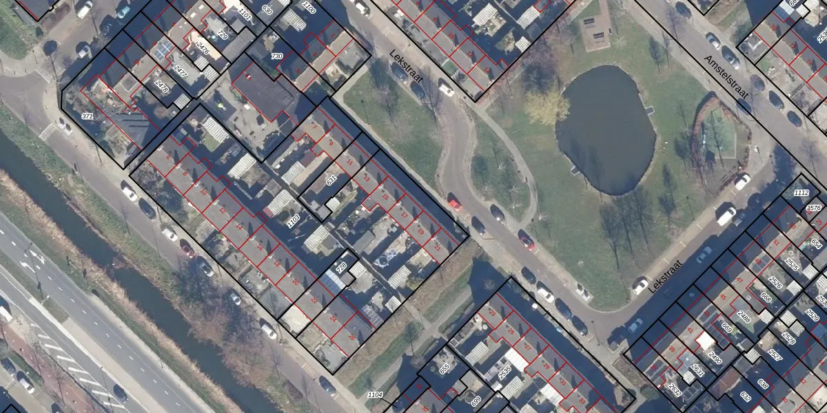 Het perceel waarop Lekstraat 17 staat heeft een oppervlakte van 2489 m². Dit is een zeer groot perceel. De perceeloppervlakte wordt geregistreerd door het Kadaster. Gedetailleerde informatie over de maten van dit perceel kunt u vinden in het rapport Kadastrale kaart met maatvoering van Lekstraat 17.