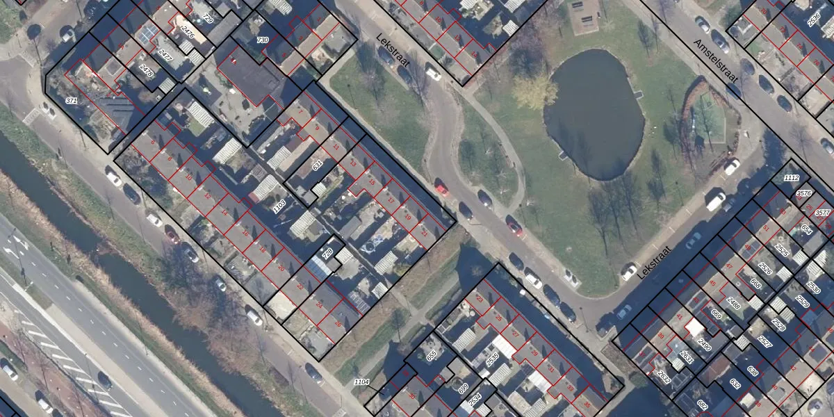 Het perceel waarop Lekstraat 19 staat heeft een oppervlakte van 2489 m². Dit is een zeer groot perceel. De perceeloppervlakte wordt geregistreerd door het Kadaster. Gedetailleerde informatie over de maten van dit perceel kunt u vinden in het rapport Kadastrale kaart met maatvoering van Lekstraat 19.