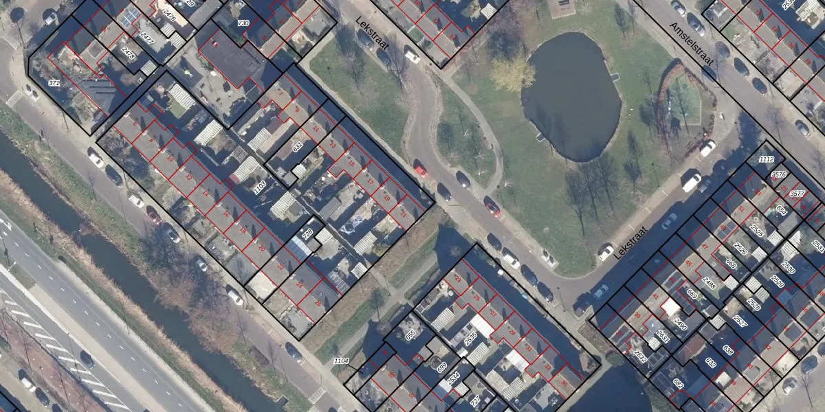 Het perceel waarop Lekstraat 21 staat heeft een oppervlakte van 2489 m². Dit is een zeer groot perceel. De perceeloppervlakte wordt geregistreerd door het Kadaster. Gedetailleerde informatie over de maten van dit perceel kunt u vinden in het rapport Kadastrale kaart met maatvoering van Lekstraat 21.