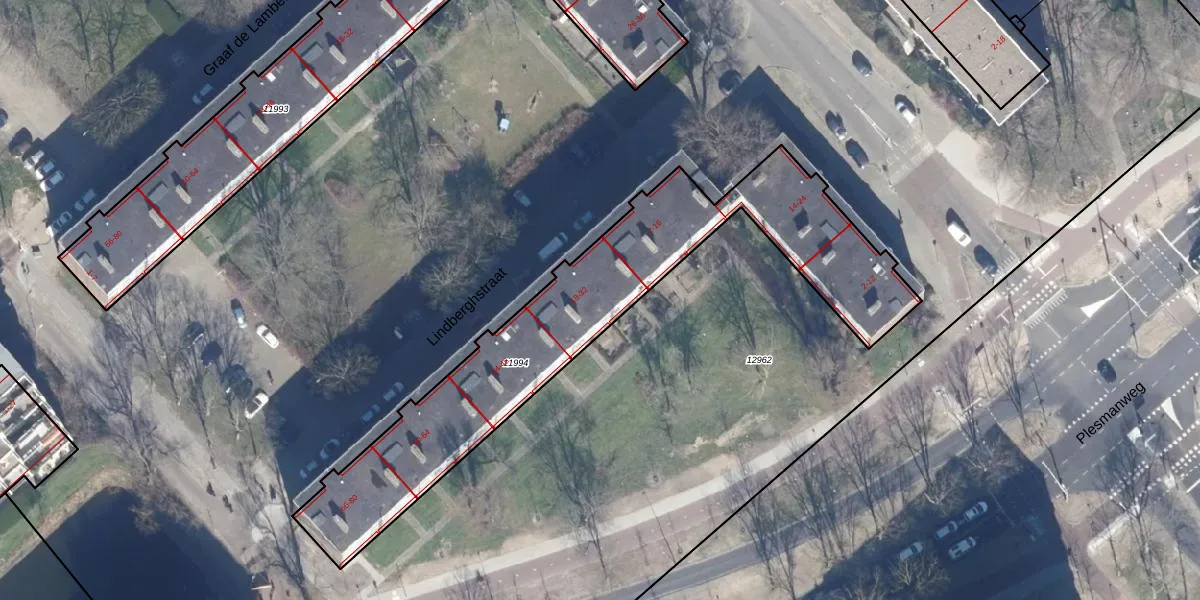 Het perceel waarop Lindberghstraat 32 staat heeft een oppervlakte van 1494 m². Dit is een zeer groot perceel. De perceeloppervlakte wordt geregistreerd door het Kadaster. Gedetailleerde informatie over de maten van dit perceel kunt u vinden in het rapport Kadastrale kaart met maatvoering van Lindberghstraat 32.