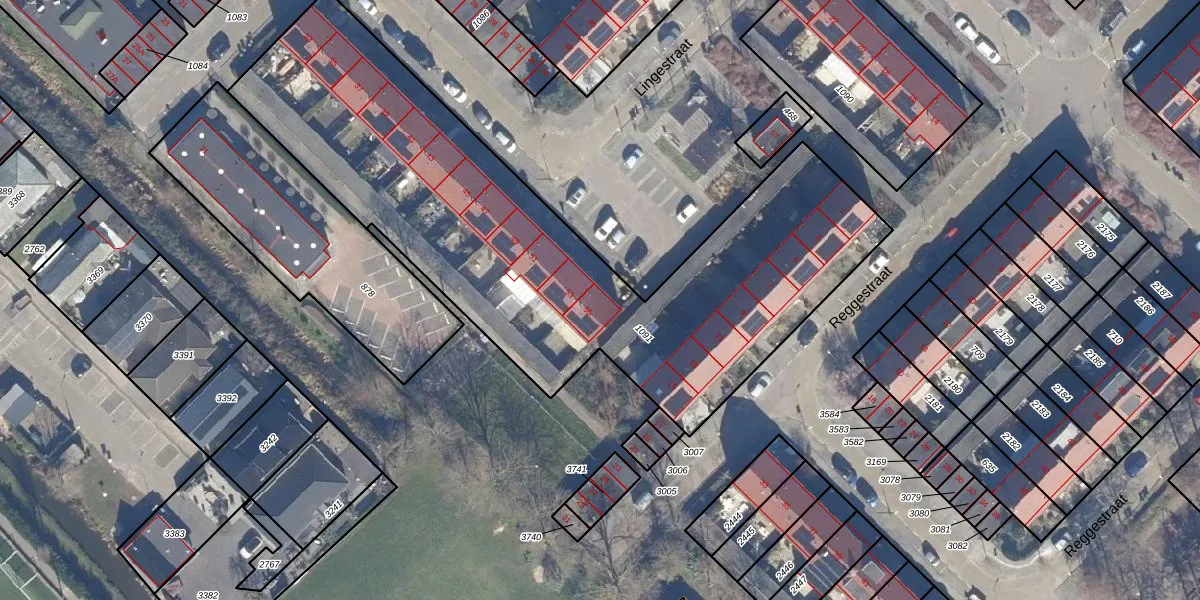 Het perceel waarop Lingestraat 55 staat heeft een oppervlakte van 2745 m². Dit is een zeer groot perceel. De perceeloppervlakte wordt geregistreerd door het Kadaster. Gedetailleerde informatie over de maten van dit perceel kunt u vinden in het rapport Kadastrale kaart met maatvoering van Lingestraat 55.