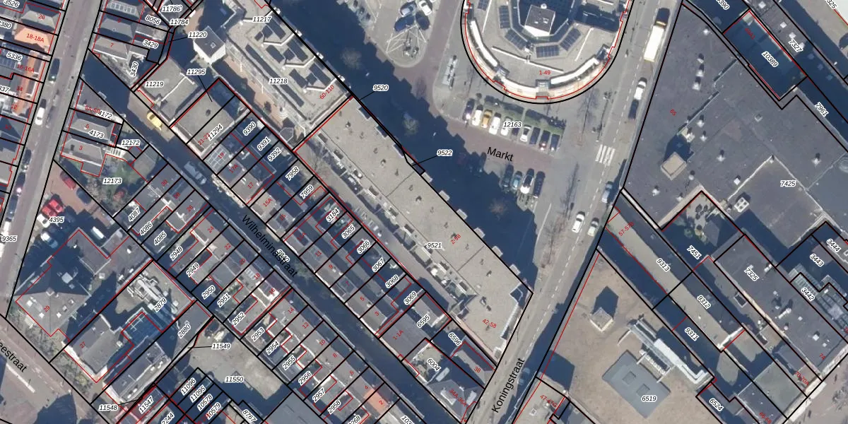 Het perceel waarop Markt 20 staat heeft een oppervlakte van 1242 m². Dit is een zeer groot perceel. De perceeloppervlakte wordt geregistreerd door het Kadaster. Gedetailleerde informatie over de maten van dit perceel kunt u vinden in het rapport Kadastrale kaart met maatvoering van Markt 20.