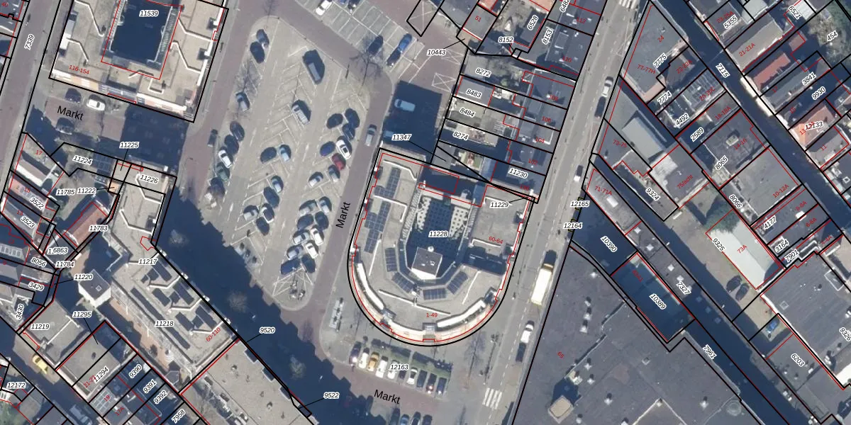 Het perceel waarop Markt 23 staat heeft een oppervlakte van 1415 m². Dit is een zeer groot perceel. De perceeloppervlakte wordt geregistreerd door het Kadaster. Gedetailleerde informatie over de maten van dit perceel kunt u vinden in het rapport Kadastrale kaart met maatvoering van Markt 23.