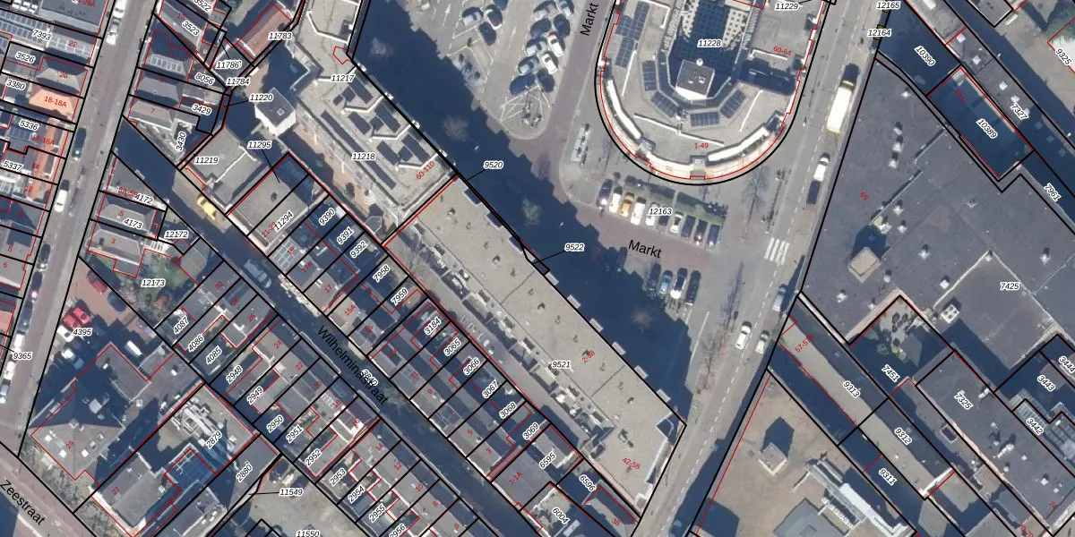Het perceel waarop Markt 26 staat heeft een oppervlakte van 9 m². Dit is een klein perceel. De perceeloppervlakte wordt geregistreerd door het Kadaster. Gedetailleerde informatie over de maten van dit perceel kunt u vinden in het rapport Kadastrale kaart met maatvoering van Markt 26.