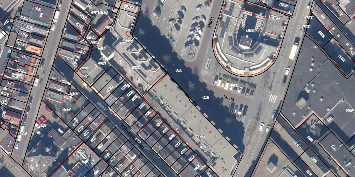 Het perceel waarop Markt 34 staat heeft een oppervlakte van 1242 m². Dit is een zeer groot perceel. De perceeloppervlakte wordt geregistreerd door het Kadaster. Gedetailleerde informatie over de maten van dit perceel kunt u vinden in het rapport Kadastrale kaart met maatvoering van Markt 34.