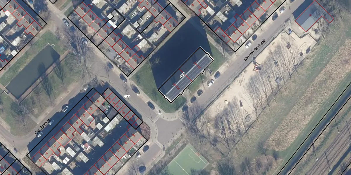 Het perceel waarop Merwedestraat 110 staat heeft een oppervlakte van 365 m². Dit is een groot perceel. De perceeloppervlakte wordt geregistreerd door het Kadaster. Gedetailleerde informatie over de maten van dit perceel kunt u vinden in het rapport Kadastrale kaart met maatvoering van Merwedestraat 110.