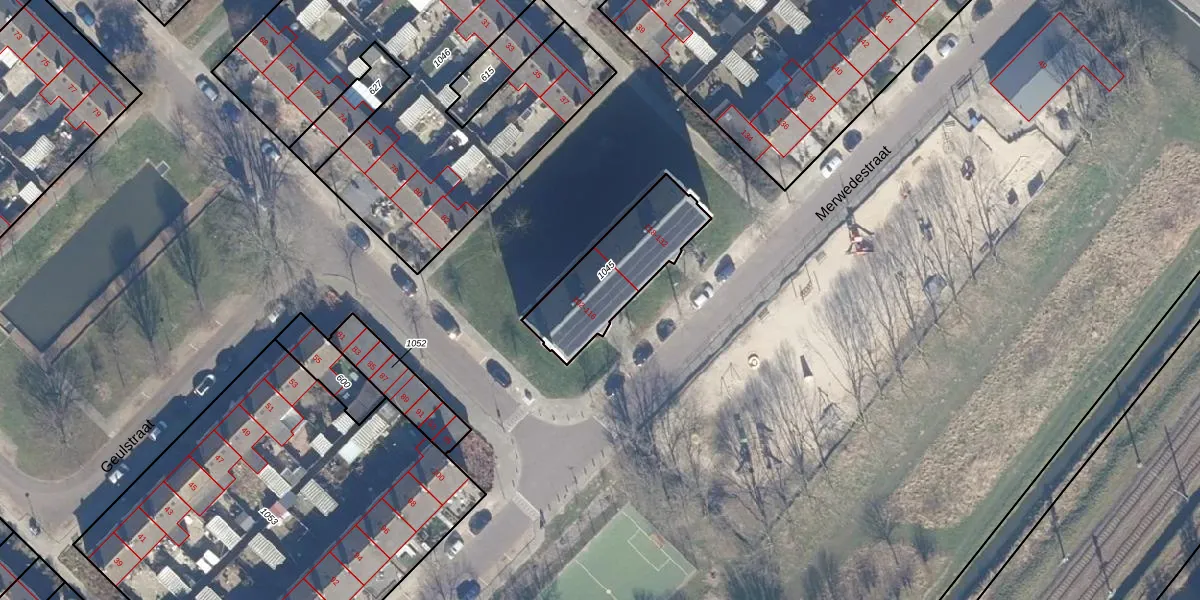 Het perceel waarop Merwedestraat 112 staat heeft een oppervlakte van 365 m². Dit is een groot perceel. De perceeloppervlakte wordt geregistreerd door het Kadaster. Gedetailleerde informatie over de maten van dit perceel kunt u vinden in het rapport Kadastrale kaart met maatvoering van Merwedestraat 112.